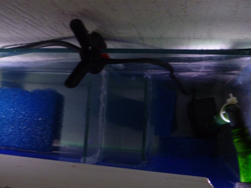 le tube est relié a une petite pompe de 300 l/h pompe brasser derrière le décore il sera camoufler plus tard....
