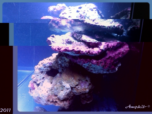Cette disposition, outre le fait d'oofrir plus d'espace possible pour les coraux offre ausi une belle place dessous la pierre qui est devant et de nombreuses cachettes pour les futurs hôtes.